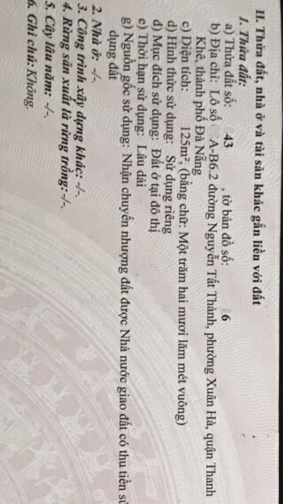 Bán lô đất MT đường Nguyễn Tất Thành, Hường Tây Bắc, Diện tích : 5 x 25 = 125m2,vị trí đất nằm thuận lợi gần biển Thanh Khê, gần đường Hà Khê, gần khu vực khách sạn Nhà Hàng trung tâm Tp Đà Nẵng.