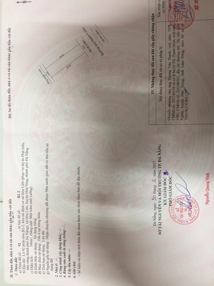 DT : 5 x 20 = 100m2 hướng Đông Nam