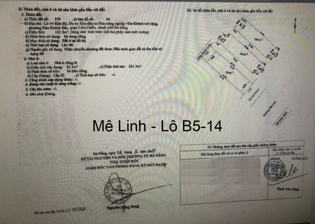 Diện tích đất 102m2, chiều ngang 5m, chiều dài > 20m, diện tích xây dựng 85,2m2, Diện tích Sàn 261m2, Hướng Đông Nam. ( đặc biệt có sổ hồng trao tay, khách an tâm mua bán)