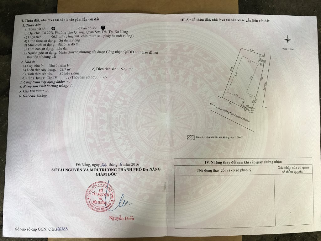 Nhà Hướng Đông Nam, Diện Tích 96m2,( hình sổ đỏ sơ đồ là hình thật của sổ đất)